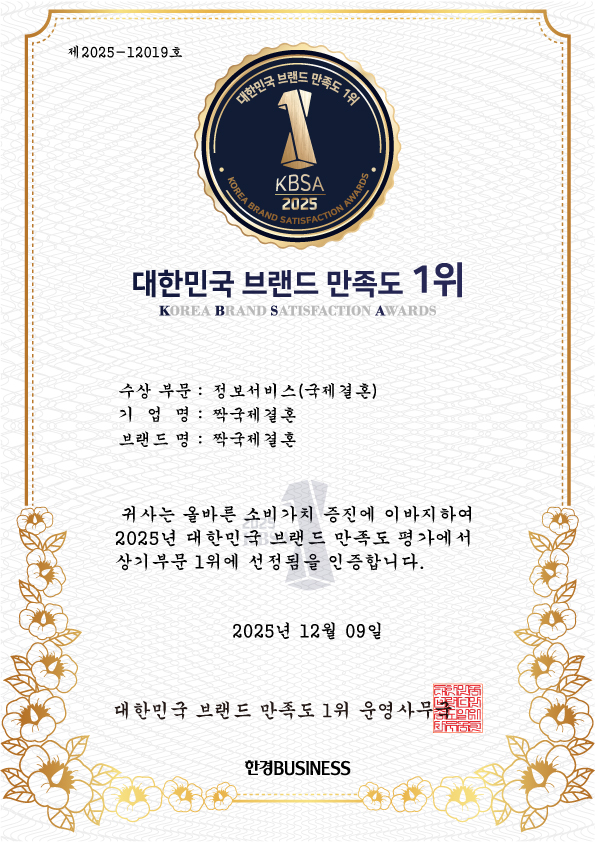 마음에 드는 여성분과 충분한 교제를 통해 행복한 인연을 만나보세요.